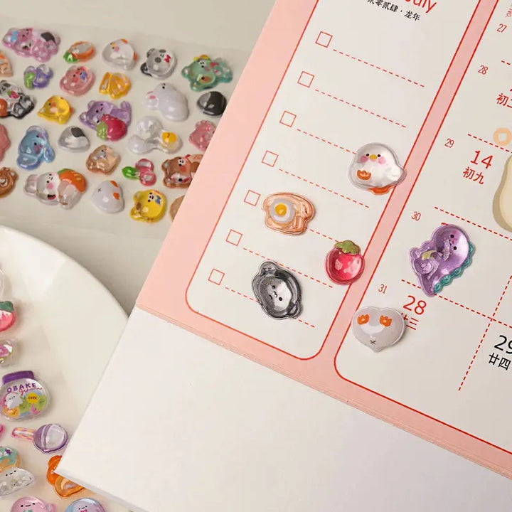3D Cute Cartoon Animal Puff Stickers Kawaii Mini Puffy Reusable Stickers for Scrapbooks Planner Journals Laptops Phone Case Deco