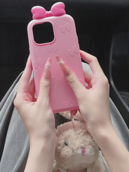 For iPhone 16 15 14 13 12 Pro Max Plus 3D Cute Bow Ear Soft Silicone Phone Case Funny Cartoon Protection Cover