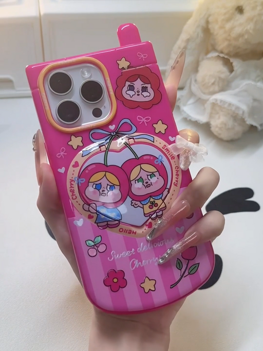 Love Mirror Case Pink Strawberry Crybaby for iPhone 15pro Case Apple 14/16/13 Anti-Shock
